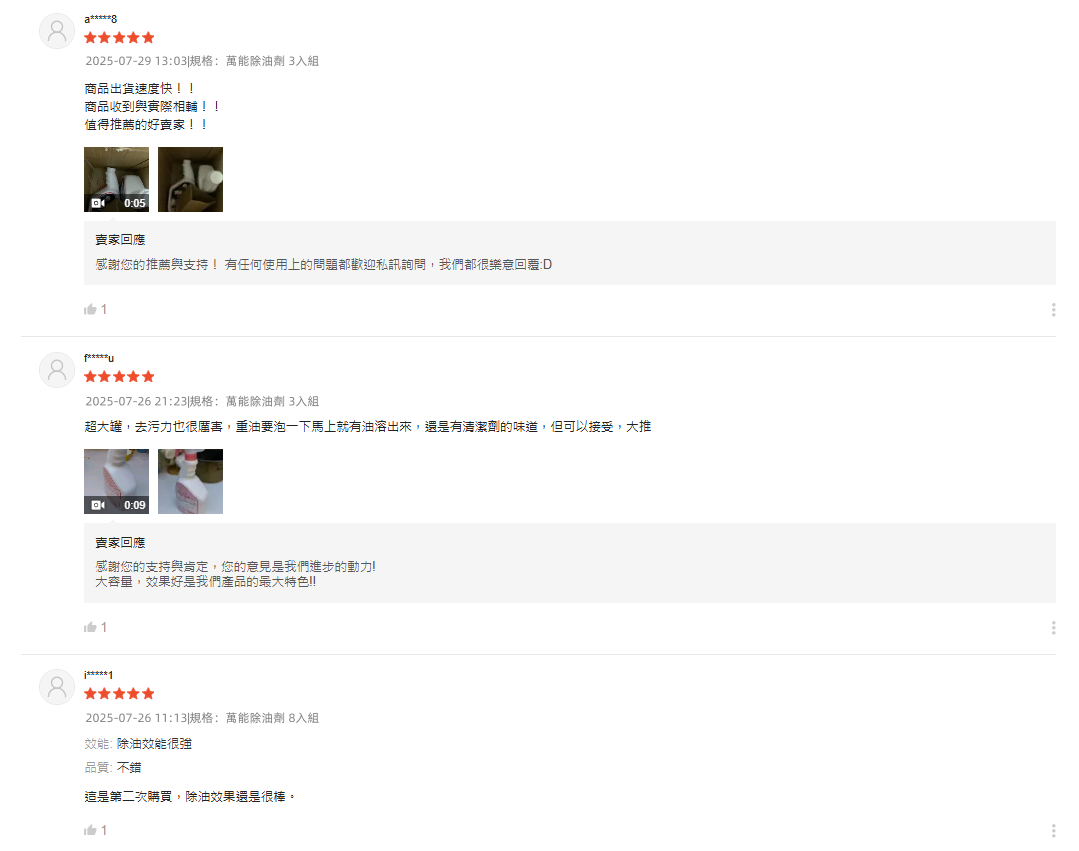 12分鐘前【夜市人生清潔劑】-(夜市人生水垢還原劑)適合各處殘留水垢,只清水垢,不傷手/不刺鼻,只要有水垢的地方通通清的起來!【夜市人生萬能除油劑】廚房救星!❗油污秒殺❗ 噴後10秒擦淨|網友狂推|頑固油漬剋星|輕鬆分解重油污 - 台灣製【夜市人生萬能除油劑】頑固油漬剋星 買四送四 8組囤貨組NT$1580(單瓶NT$197)