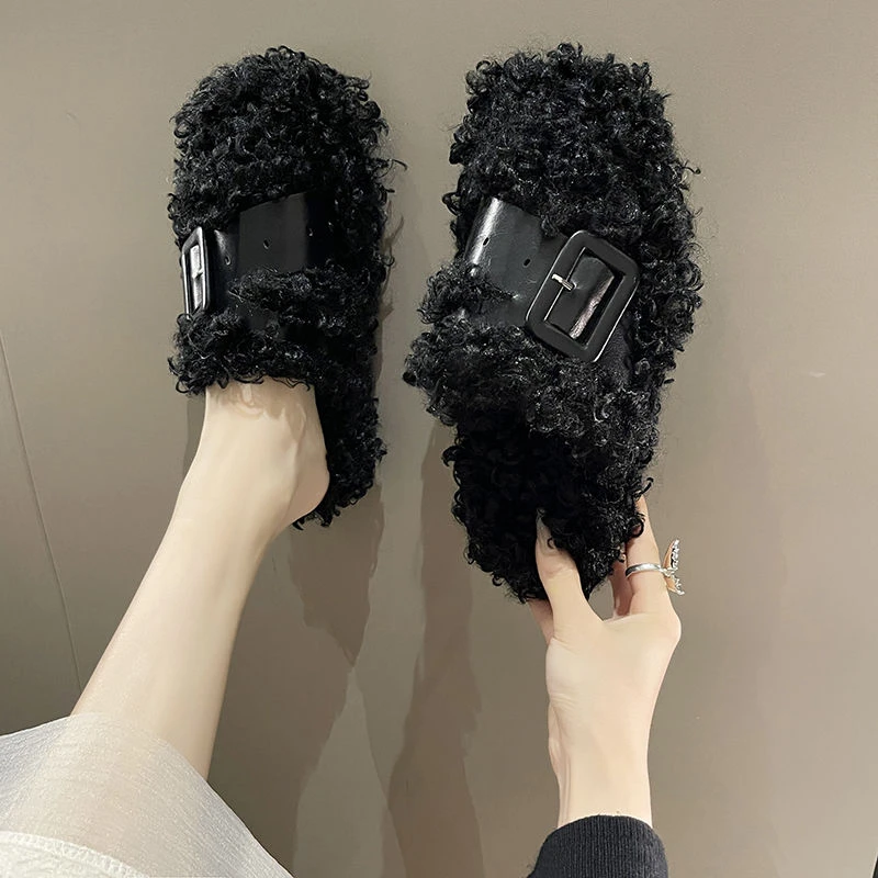 半小時前2024秋冬新款厚底羊毛卷拖鞋女外穿百搭室內外懶人包頭棉拖鞋 - 單買一件NT$999