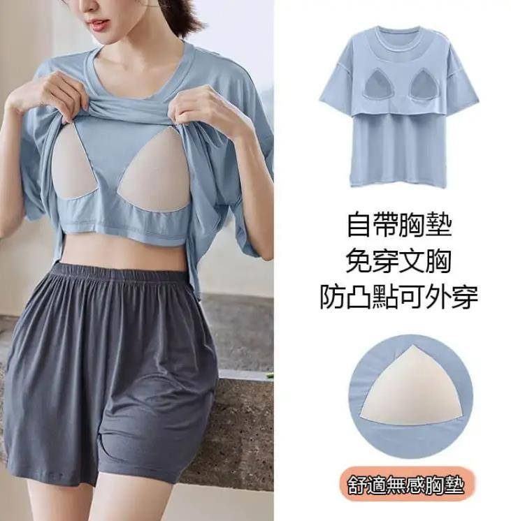 7分鐘前帶胸墊睡衣防走光睡衣女夏季短袖短褲薄款寬鬆家居服裝 - 【買一送一】 2入組 NT$1098【均價NT$549】
