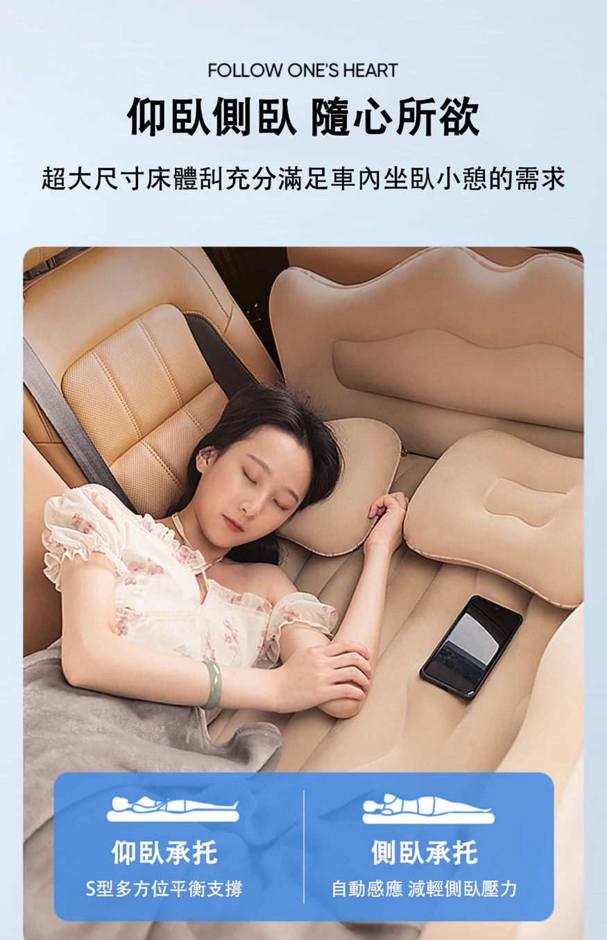 汽車充氣床墊【親膚植絨+全配套裝】 雙人充氣床墊 露營充氣床墊